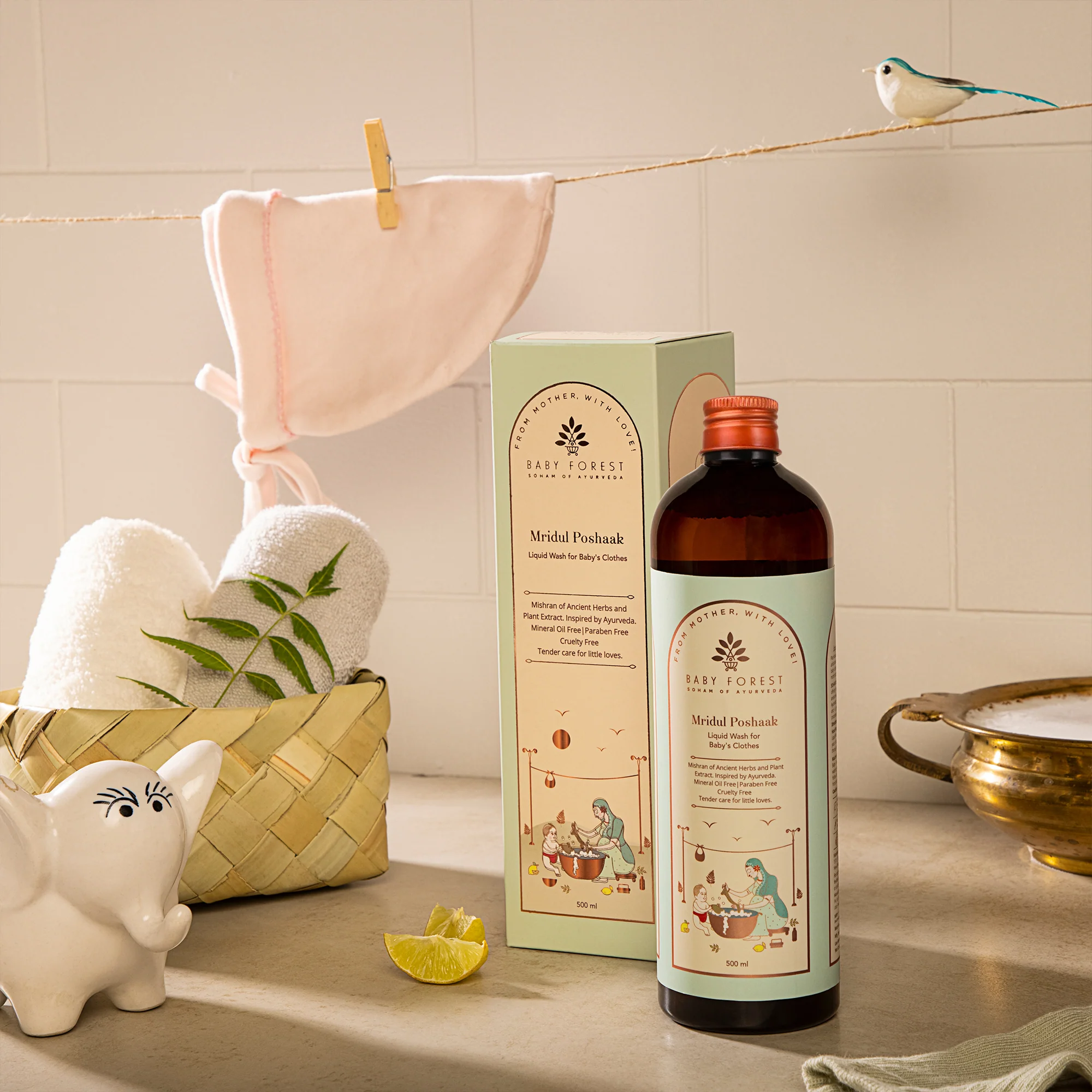 A formulation of ancient herbs and plant extracts, this mild surfactant for babies is rich in antibacterial properties, while gently and thoroughly cleans your baby’s clothes and keeps them super soft.