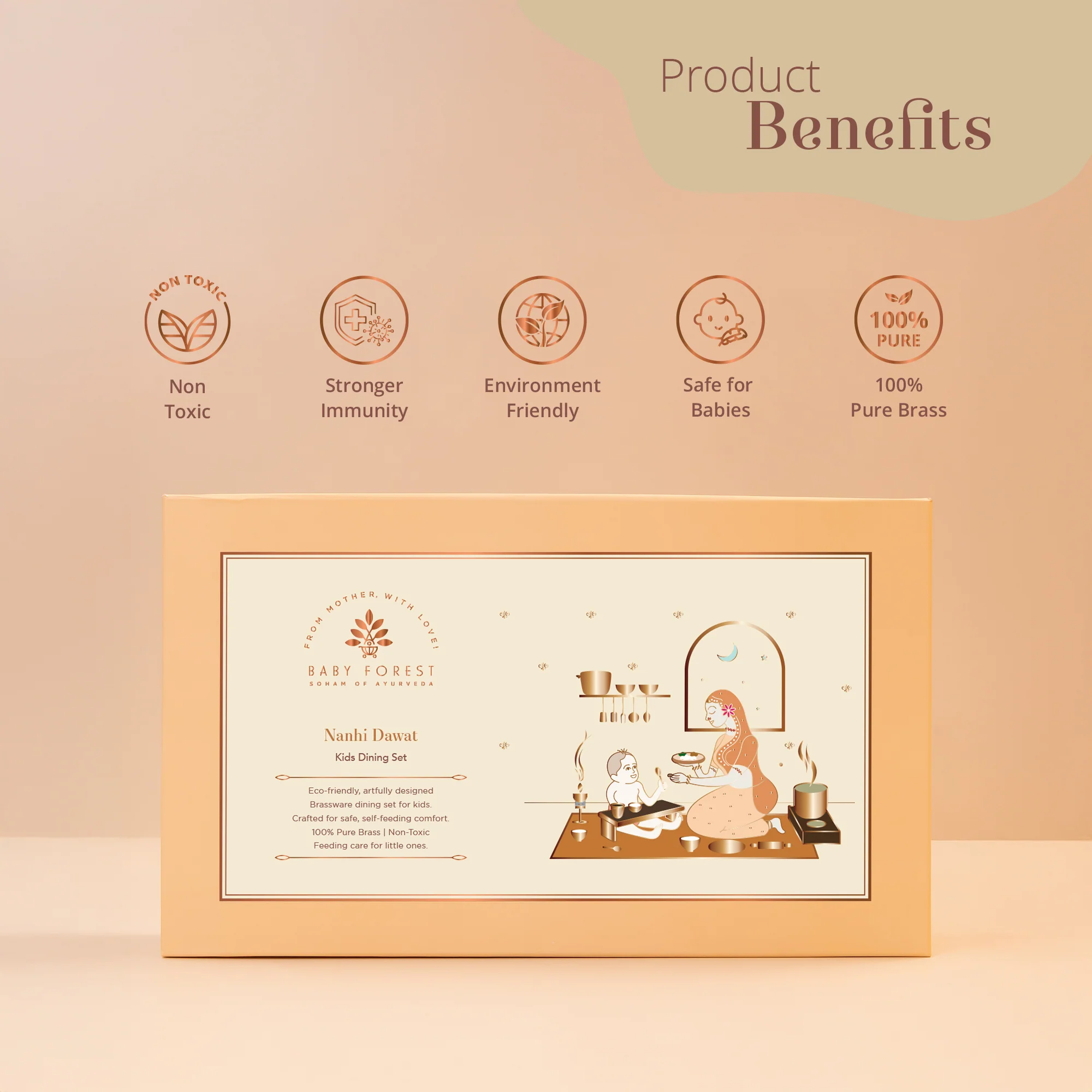 Inspired by the Ayurvedic timeless tradition, our Brass Dinner Set is thoughtfully designed to offer both beauty and functionality for your little one.