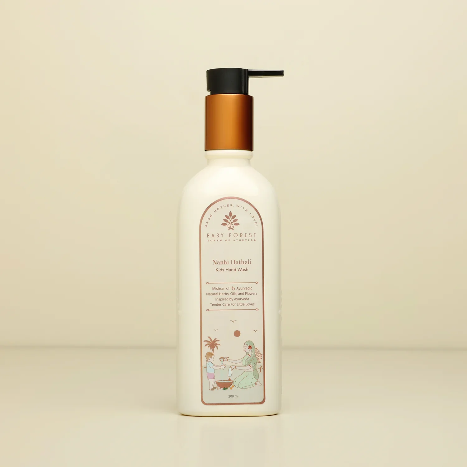 "The first-ever Ayurvedic handwash for kids, made with the goodness of Tulsi, orange peel, chamomile, and rose oil. Crafted with love and attention to detail, this Ayurvedic handwash is infused with a blend of natural ingredients that are not only gentle but also effective in keeping your child's hands clean and healthy."